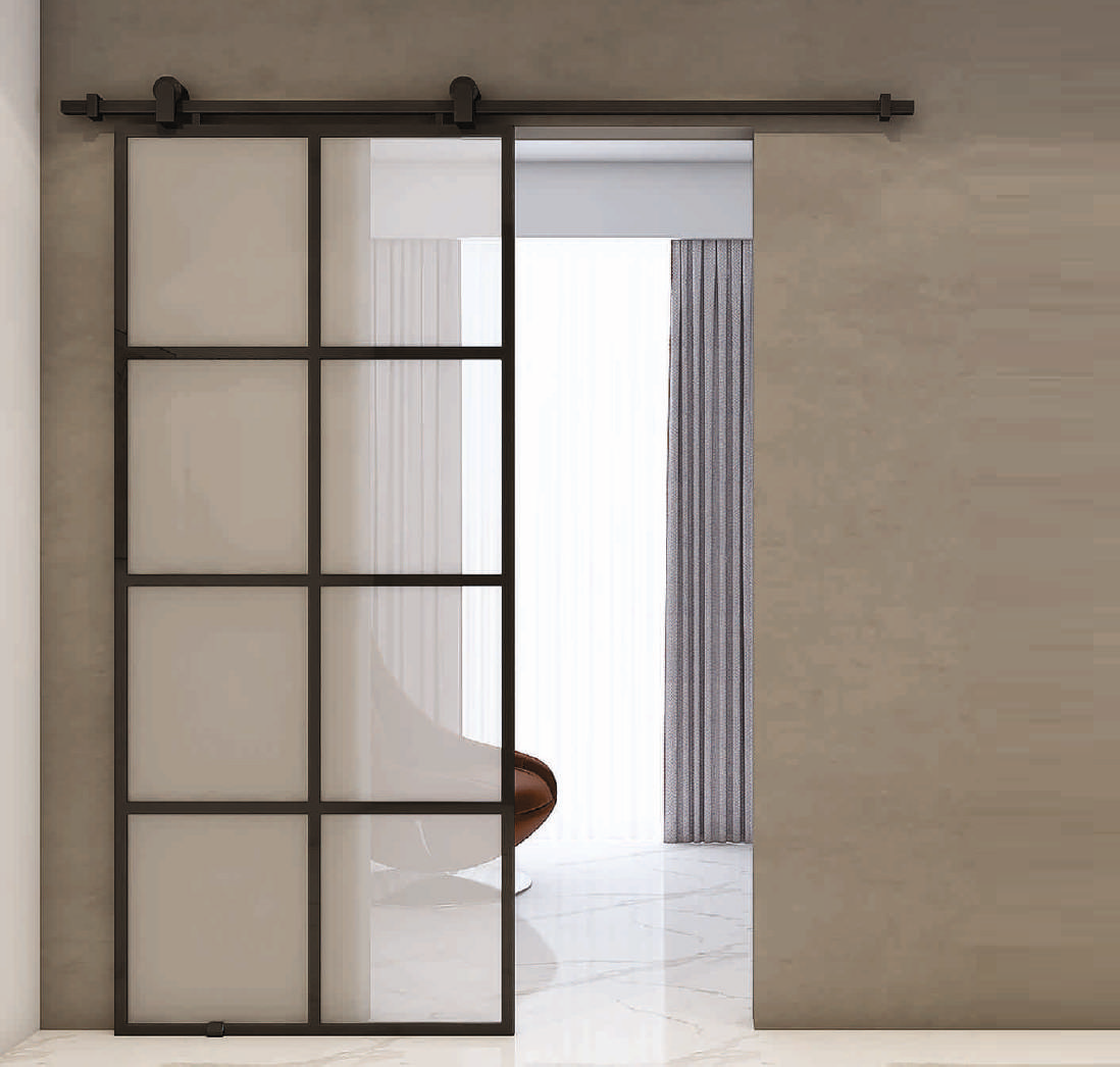 Barn door system for aluminum frame profile
